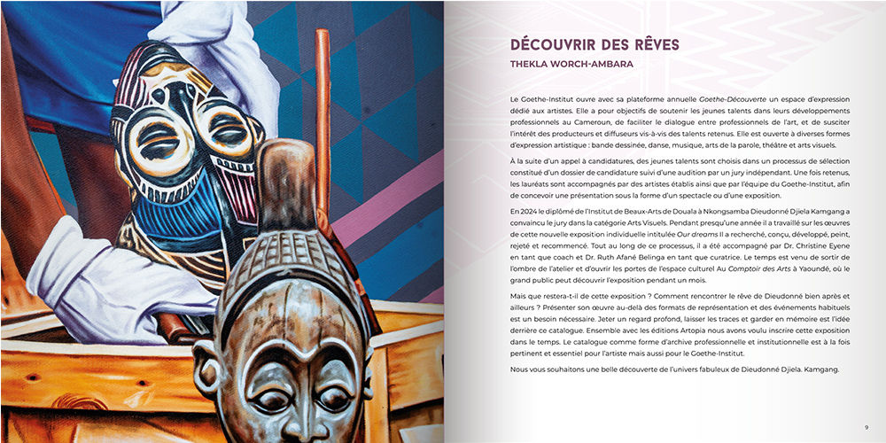 Catalogue de l'exposition qui met en lumière le travail de l'artiste Dieudonné Djiela Kamgang, lauréat du Goethe-Découverte 2024.